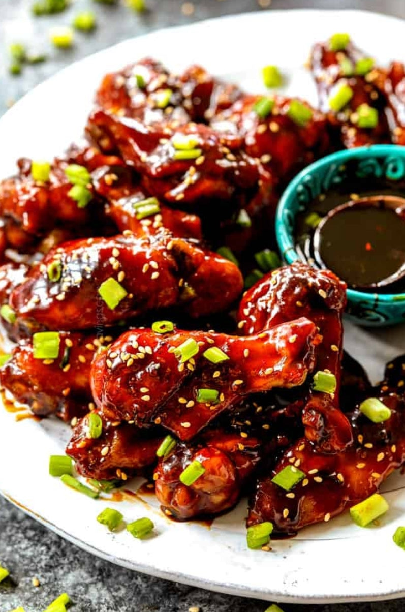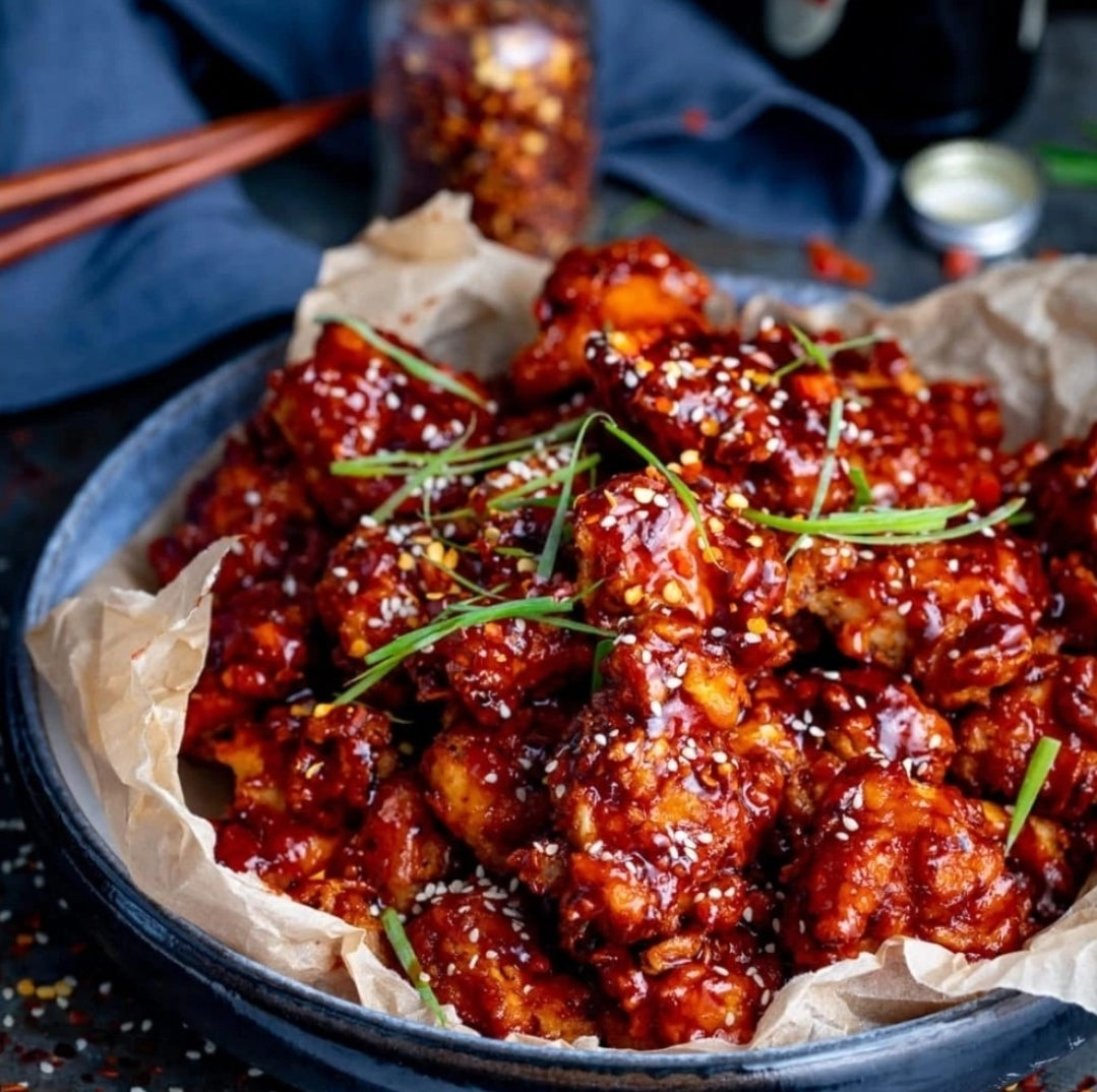 Spicy Samyang chicken topped with sesame, served with a tub of creamy Kewpie Japanese mayo.